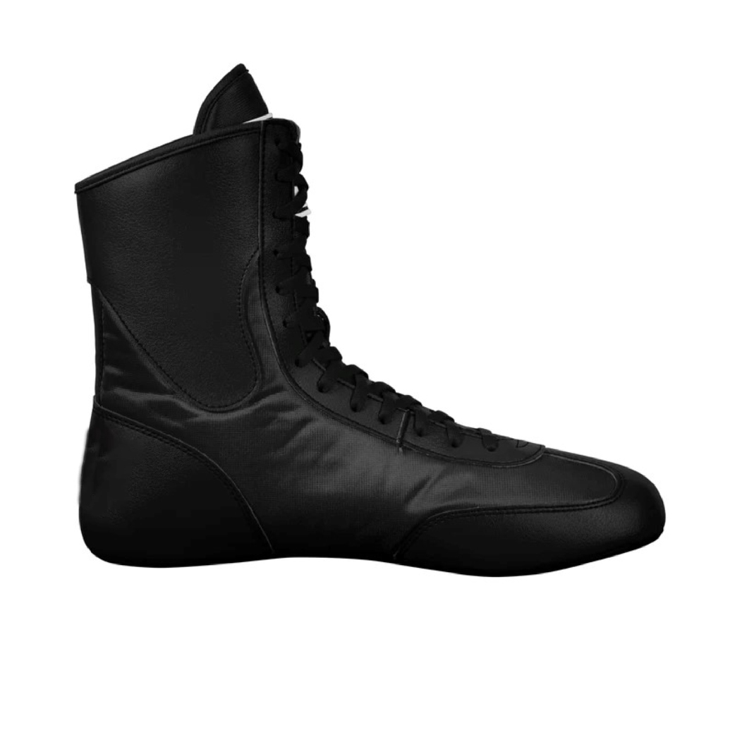 Full synthetic leather upper with tight weave nylon fill sits atop sculpted polyurethane soles designed exclusively for boxing. Built for quick footwork and speed. Beautiful embroidery complements any style. Approximate 12″ height is ideal.